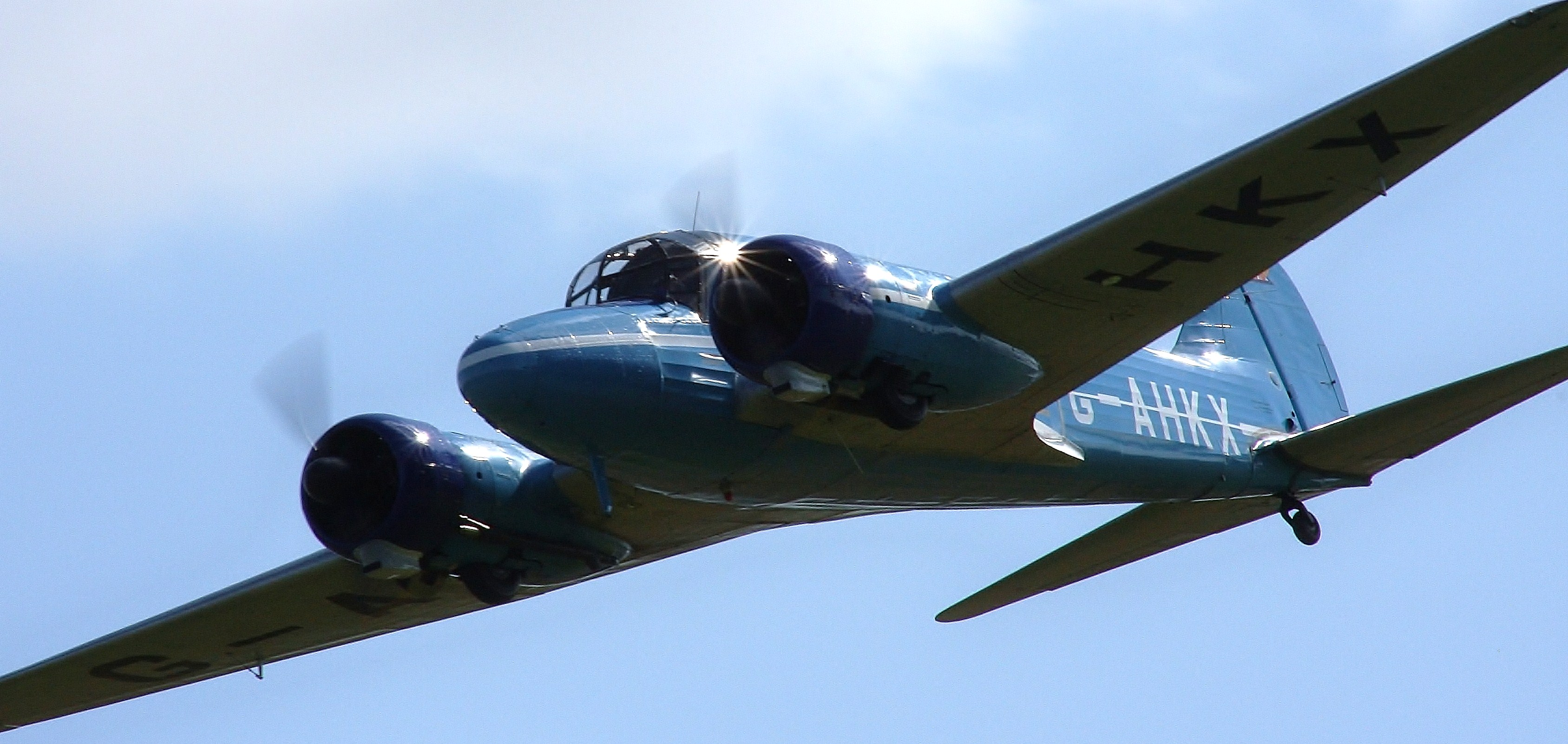This was followed by a spirited display by the resident, BAE owned, Avro Anson which is one of only a few of the remaining 11,000 built that is in airworthy condition. Next was the Avro 504 followed by a formation flypast by the biplane trainers of the collection: the Polikarpov Po-2, Hawker Tomtit, DH82a Tiger Moth and the Blackburn B2. The sections of the flypast then split up for a series of arcing topsides and graceful turns.