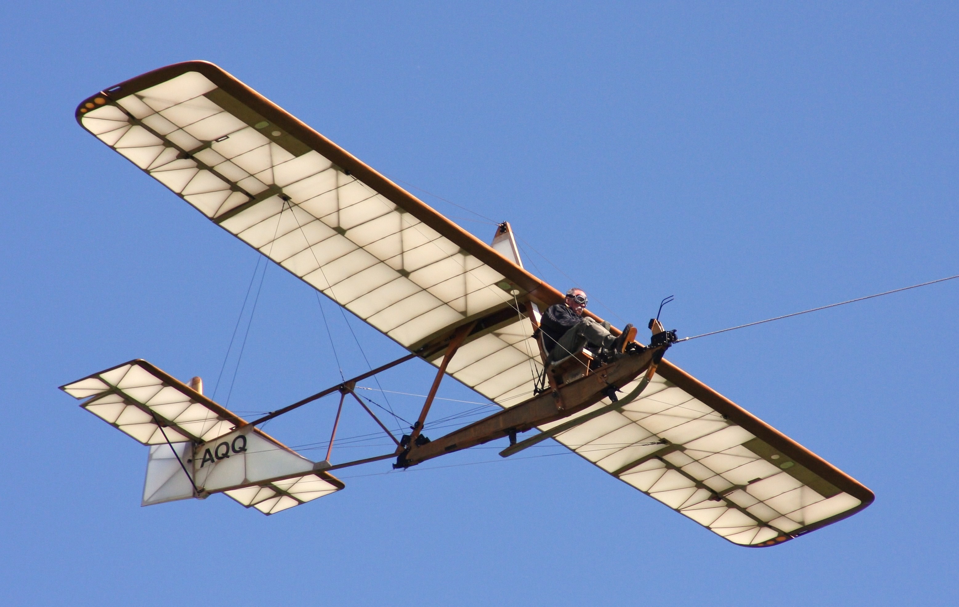 The wood and fabric Eon Primary was towed by the Super Cub, another vintage aircraft. Photo: Alex Prins